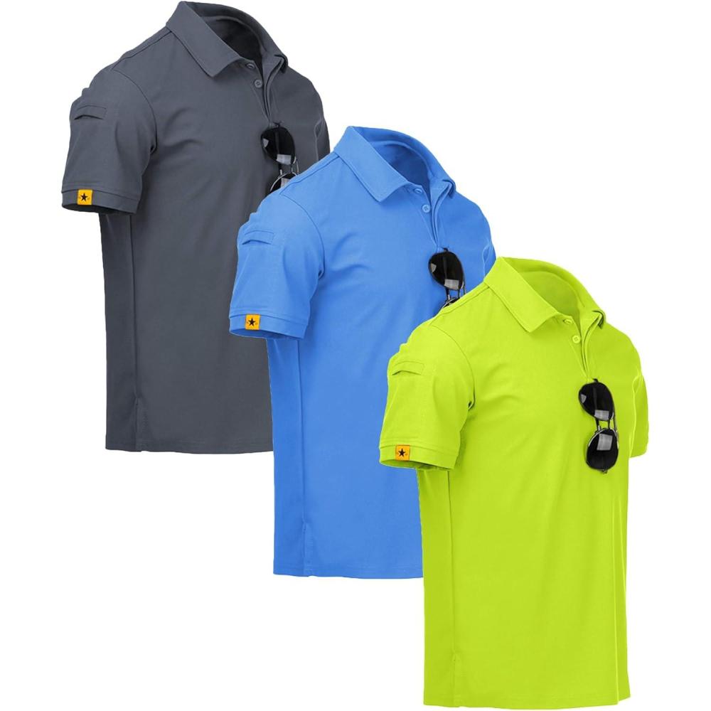 ZITY 3 Pack Mens Polo Shirt Short Sleeve Sports Performance Business Casual Golf Shirts for Men Collared Tactical T-Shirts(Khaki Grey Green)