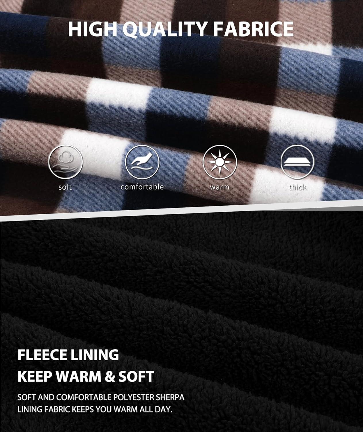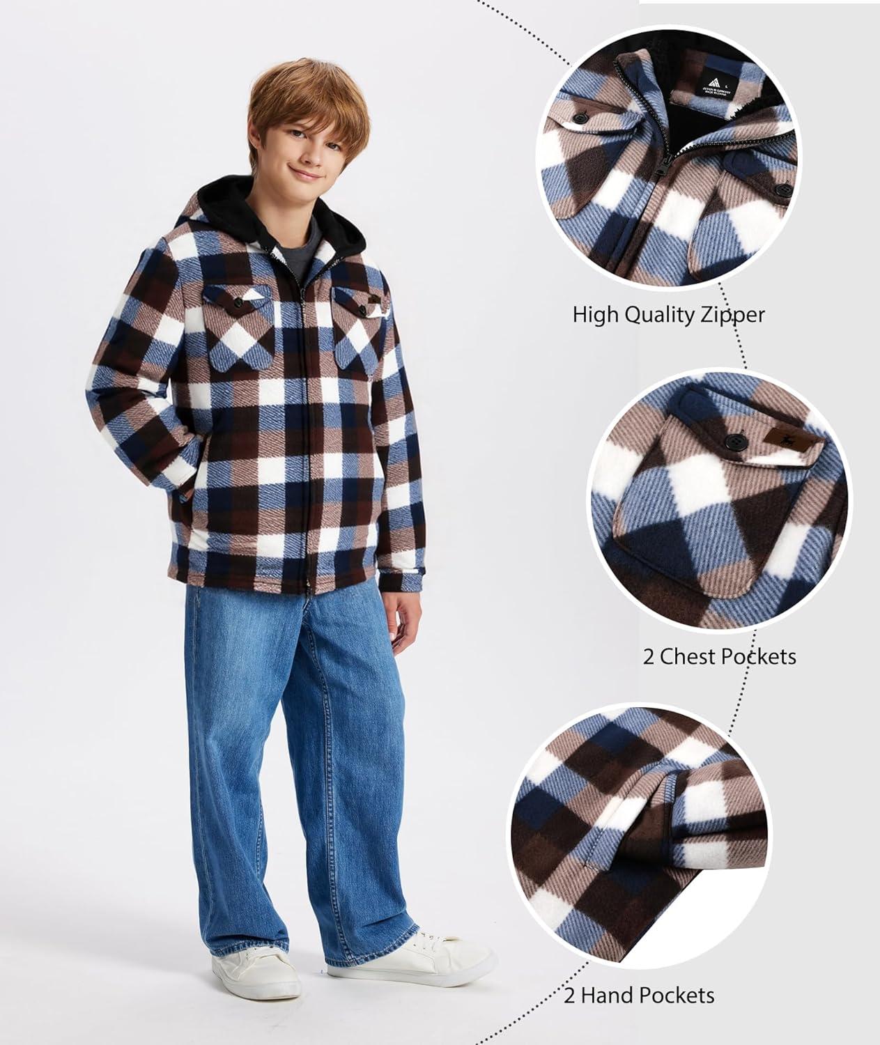 ZITY Boys Flannel Shirt Jacket Fleece Sherpa Lined Plaid Jackets Unisex Coat Full Zip Hoodie Girls Winter Outwear 6-15 Years(Coffee Brown)