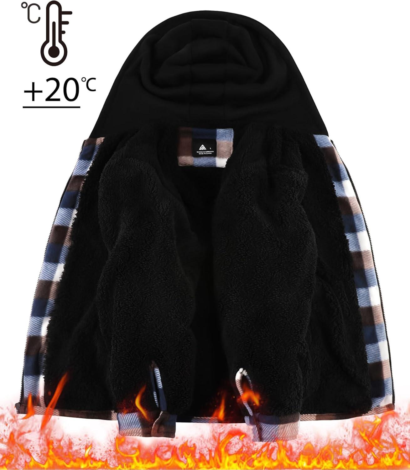 ZITY Boys Flannel Shirt Jacket Fleece Sherpa Lined Plaid Jackets Unisex Coat Full Zip Hoodie Girls Winter Outwear 6-15 Years(Dark Grey)