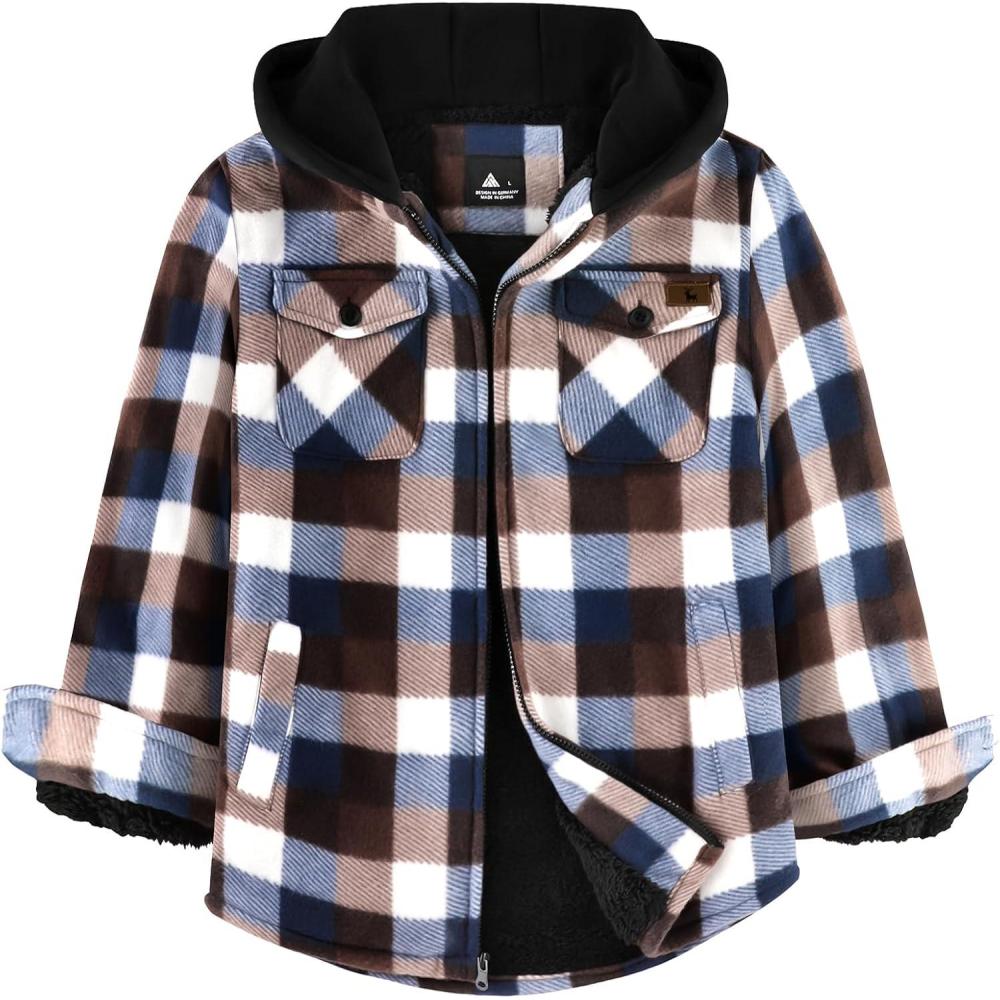 imageZITY Boys Flannel Shirt Jacket Fleece Sherpa Lined Plaid Jackets Unisex Coat Full Zip Hoodie Girls Winter Outwear 615 YearsCoffee Brown