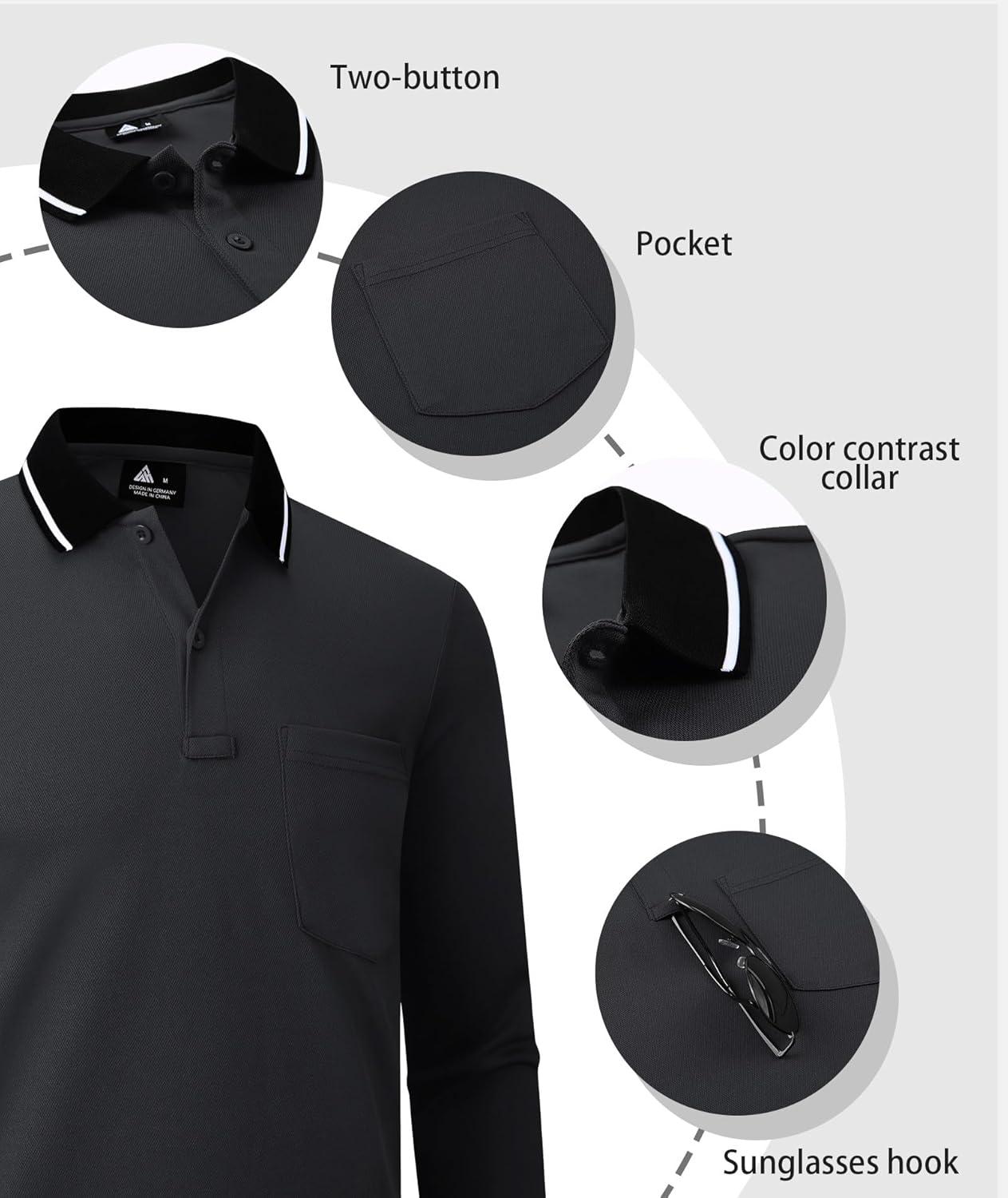 ZITY Men Polo Shirts Long Sleeve with Pocket Golf Shirts Shirts for Men Casual Work Athletic Collared T-Shirts(Z Dark Grey)