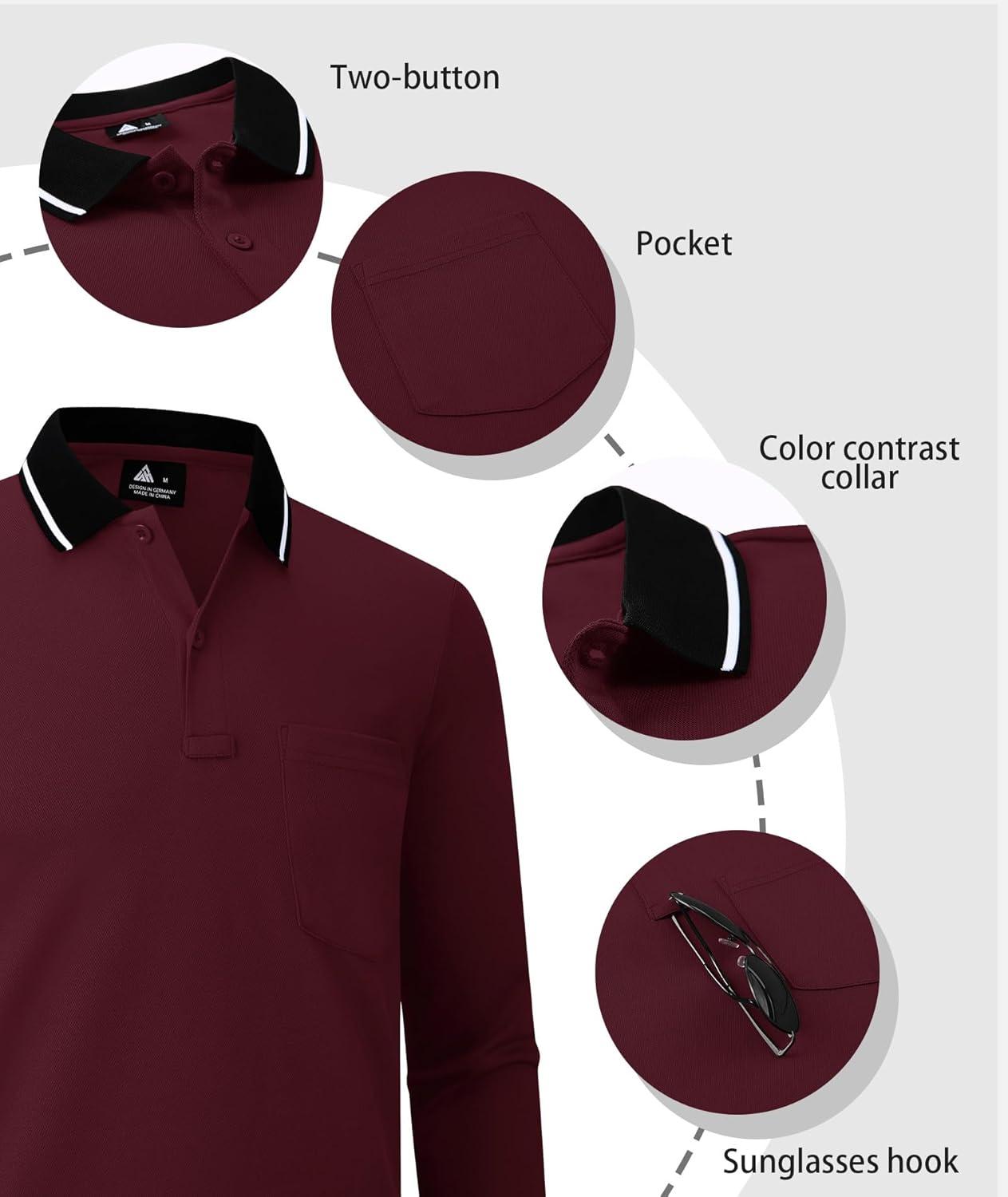 ZITY Men Polo Shirts Long Sleeve with Pocket Golf Shirts Shirts for Men Casual Work Athletic Collared T-Shirts(Z Wine Red)